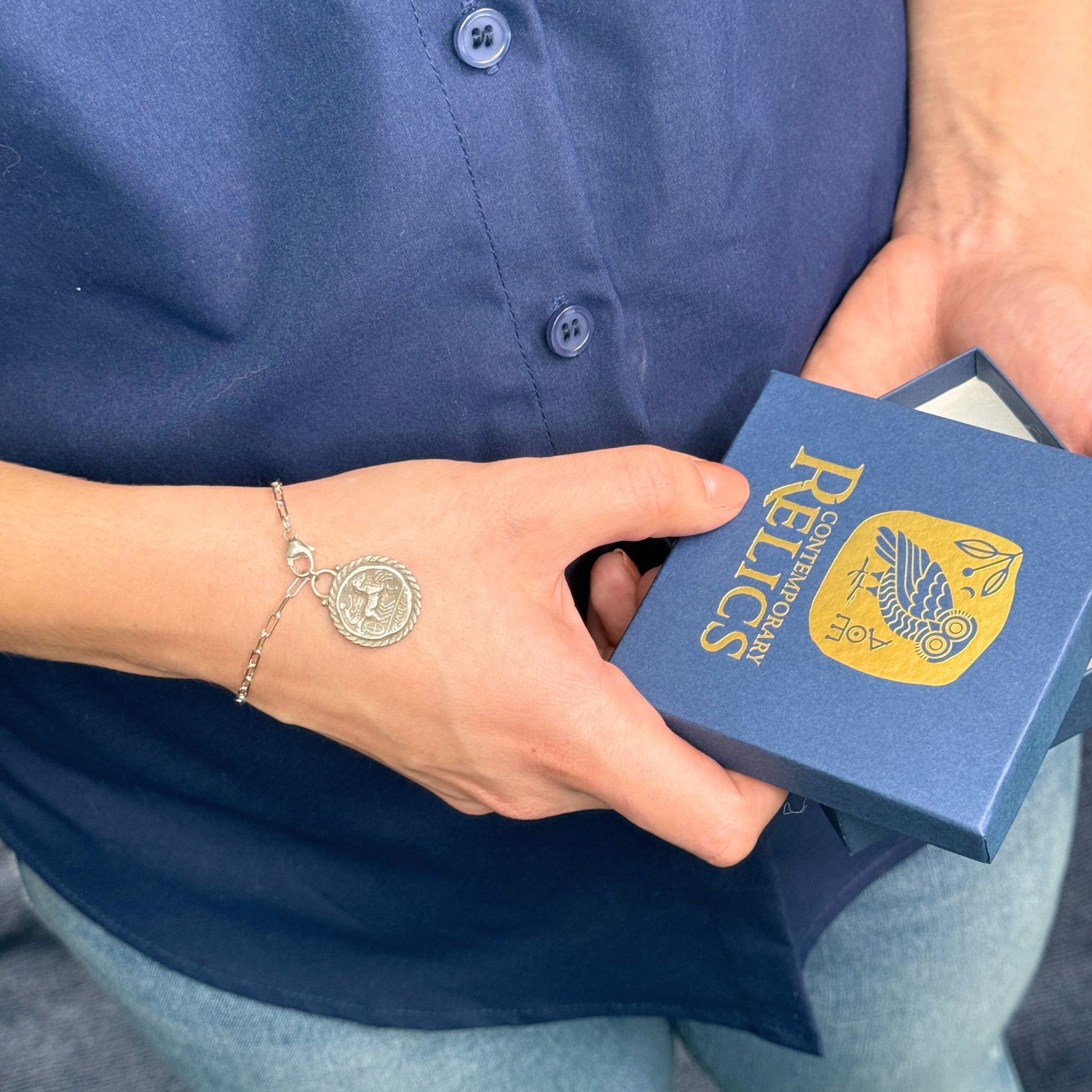 Greek Revival Phillip II of Macedon coin on a sterling silver bracelet. I love this coin for the movement you can feel in the horse and chariot! Elegant simplicity for an everyday look.