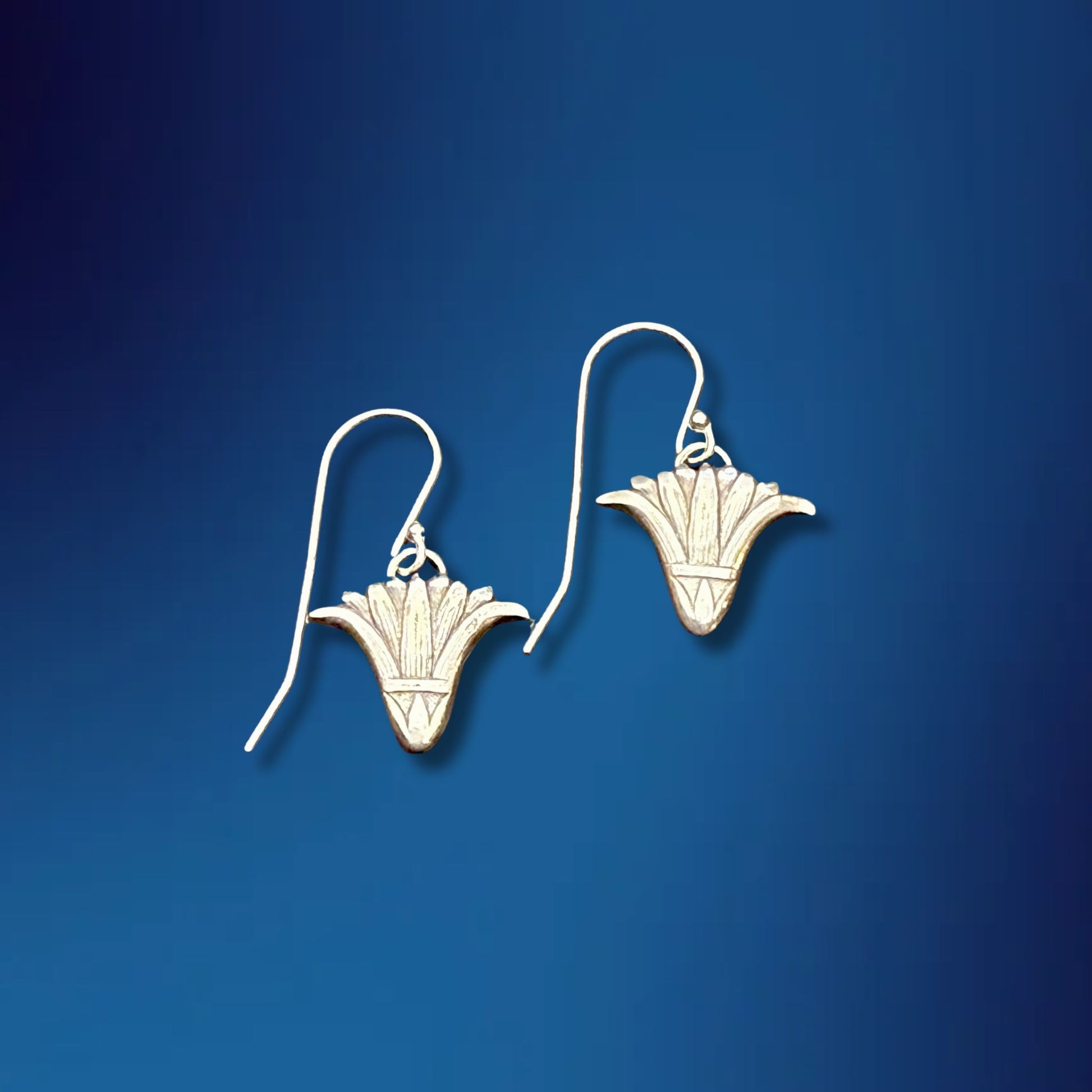 These earrings are made using a historical die on my hydraulic press. Sterling Silver with 18" sterling silver chain. Made to order, please allow 4-6 weeks for delivery.