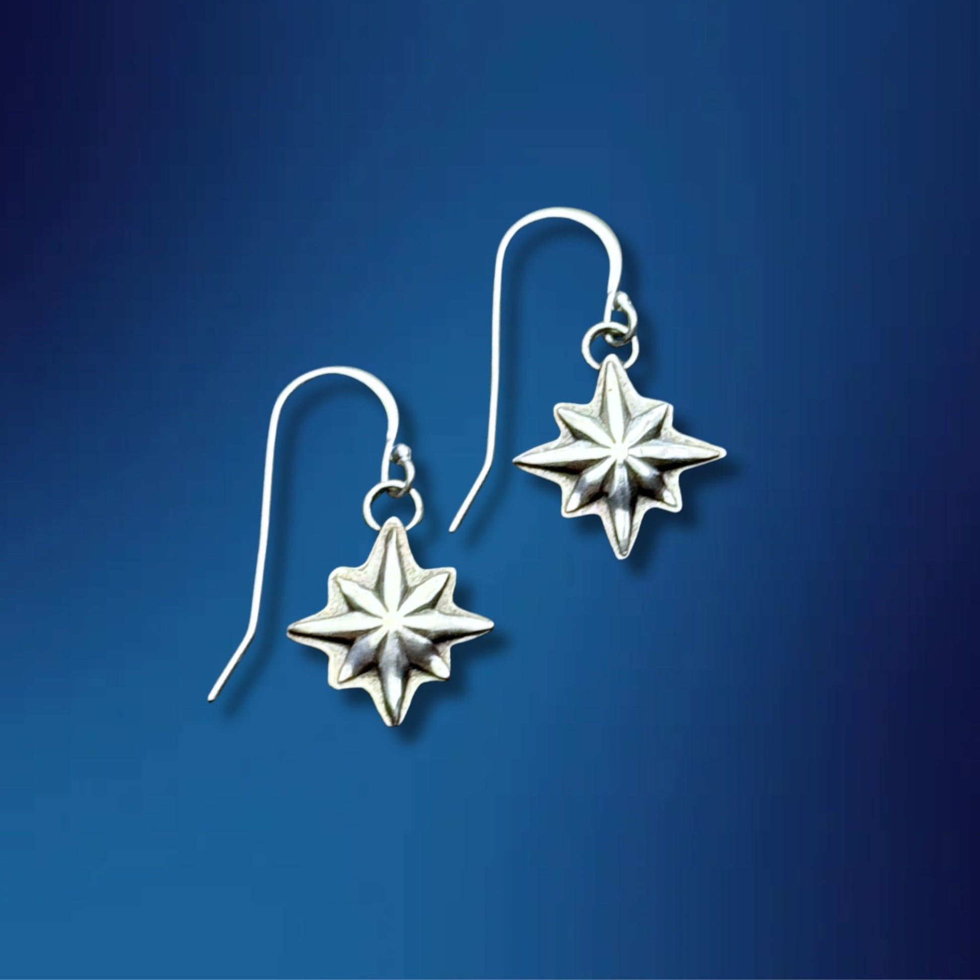 These earrings were made using a historical die on my hydraulic press and then finished. Sterling Silver with earwire. Made to order, please allow 4-6 weeks for delivery.