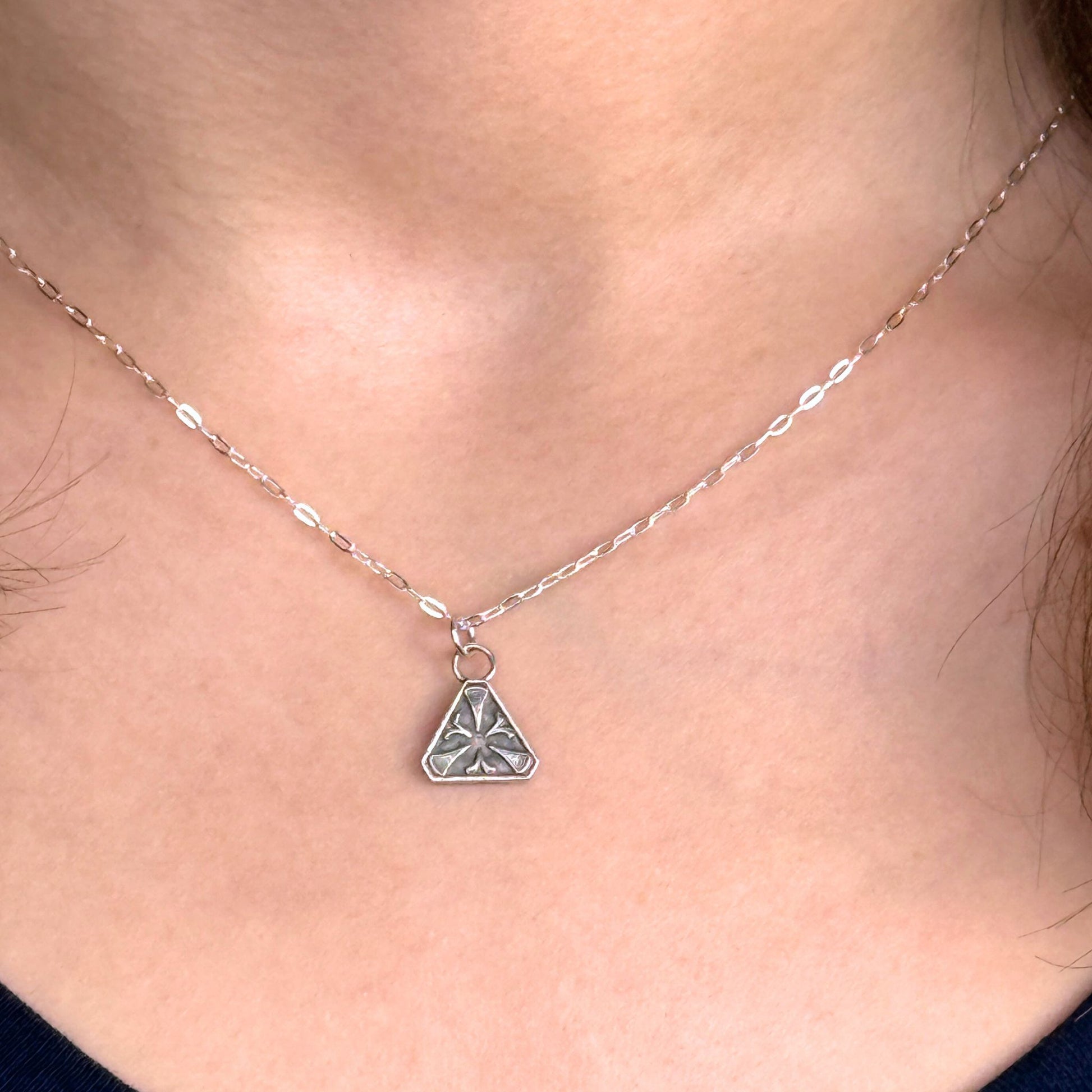 This necklace is made using a historical die on my hydraulic press. Sterling Silver with 18" sterling silver chain. Made to order, please allow 4-6 weeks for delivery.