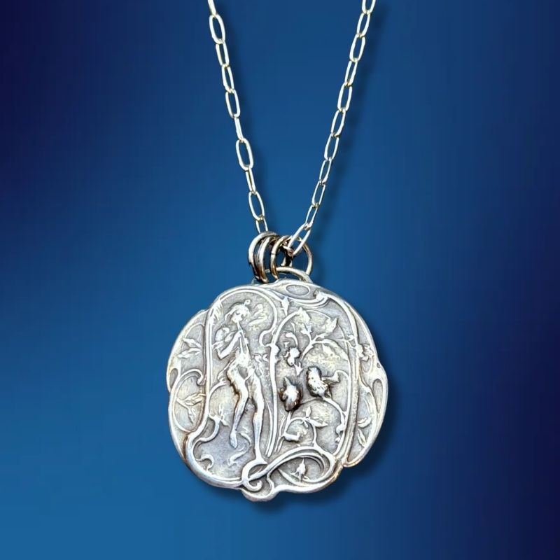 This necklace is made using a historical die on my hydraulic press. Sterling Silver with 18" sterling silver chain. Made to order, please allow 4-6 weeks for delivery.